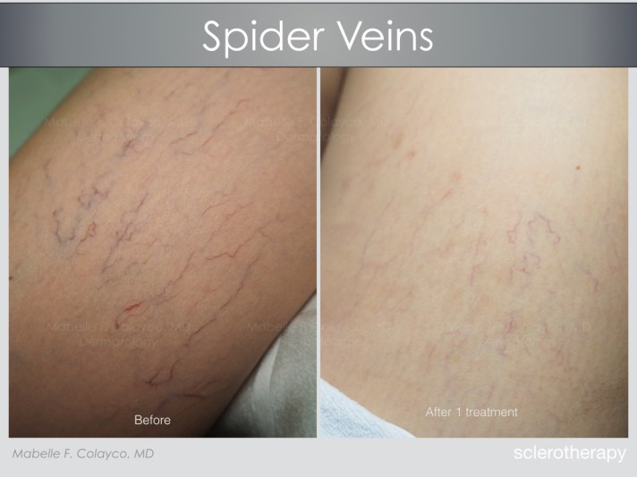 Spider veins are damaged small vessels that appear on face or legs. They are usually not painful or harmful, but many patients want to have them removed for cosmetic reasons. 🕷