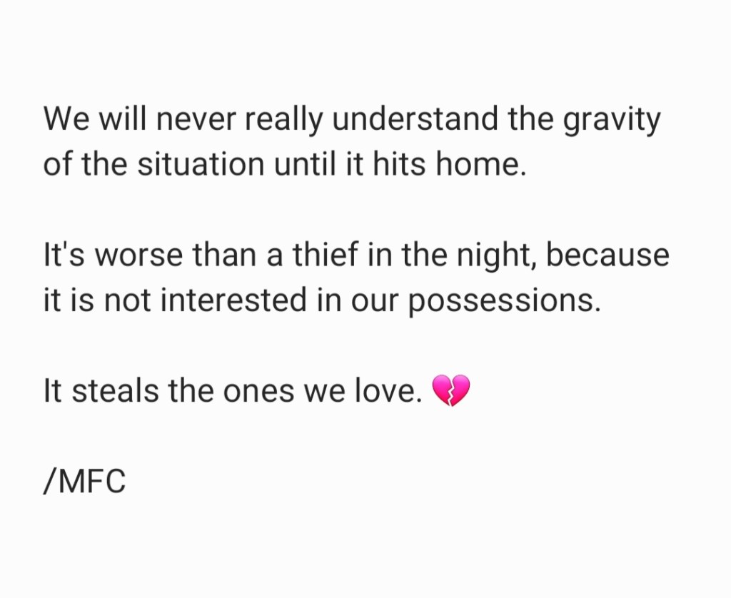 This week was different. I lost 2 loved ones to COVID-19, 2 days apart. It was unexpected… and their loss hit me hard. From a scientific perspective, I know the weight of this disease. From a personal standpoint, now I can really feel the burden of this pandemic.